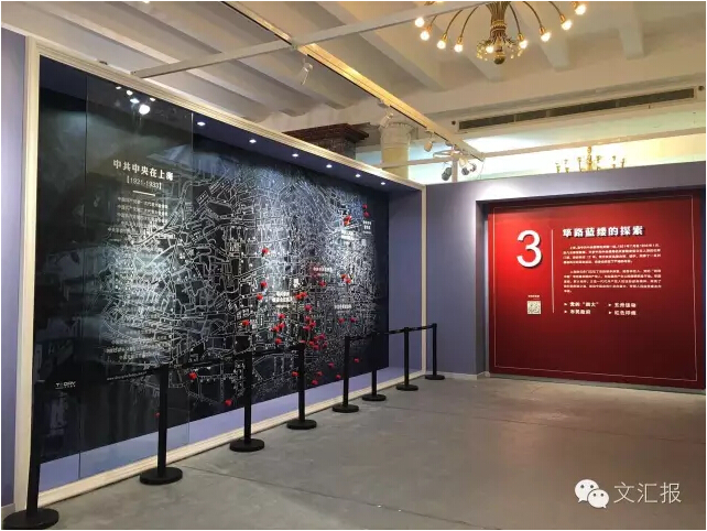 上海,是中共中央領導機關第一站。1921年7月至1933年1月,除幾次短暫遷徙,中共中央領導機關及各級機構曾都秘密設立在上海的石庫門里,前后將近12年。在此期間,共產黨的諸多“第一”便在上海誕生,可以說,上海的石庫門見證了黨的艱辛探索。在展覽的第三部分,一幅“中共中央在上海”的地圖直觀地展現中共中央早期機關在上海的分布。