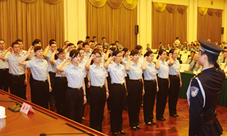 黨的十八大以來,中央高度重視改革的系統集成,交給上海一系列重大改革先行先試任務。2014年6月,上海成為全國首批司法改革試點城市。圖為2014年9月,中國首批法官、檢察官助理在上海誕生