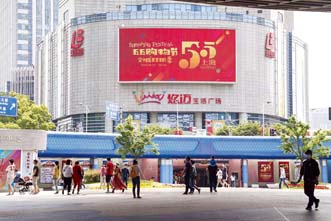 上海著力建設具有全球影響力的國際消費城市。2020年5月,上海在全國首創“五五購物節”。右圖為2020年9月,“中華商業第一街”南京路步行街東拓段正式亮燈“開街”