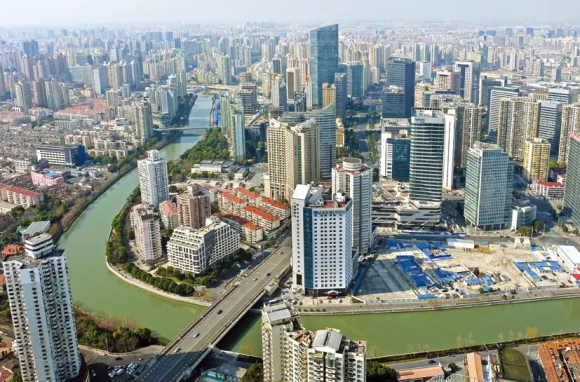 蘇河灣俯瞰 堅持綠水青山就是金山銀山的生態理念,蘇州河兩岸改造后呈現了上海總商會、四行倉庫段、福新面粉廠段、蝴蝶灣地塊等四大片區的“蘇河十景”。 |