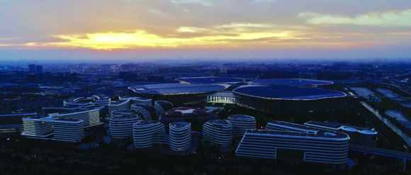 上圖為國家會展中心(上海)南廣場;下圖為虹橋國際中央商務區青浦片區 圓滿完成四屆中國國際進口博覽會服務保障任務,積極承接展會溢出效應,9家企業入選“6+365”功能性平臺、數量位居全市第一。全面落實《虹橋國際開放樞紐建設總體方案》和上海市工作方案,出臺青浦區實施意見及行動方案,5個方面46項重點工作深入推進。