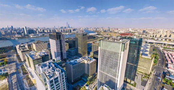 當前,浦東已基本建成上海國際經濟中心、金融中心、貿易中心和航運中心核心區,助力上海城市發展能級和核心競爭力顯著提升、全球資源配置能力進一步增強。圖為央企總部集聚的世博前灘地區