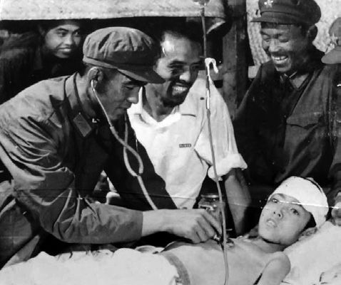 劉永海:救出來之后,上海醫療隊的就在旁邊嗎?白景儒:剛開始沒有,那時候部隊里有衛生隊,衛生隊里有兩個軍醫,叫做意喜賢、毛同生,排長叫意圖鉆(音)。