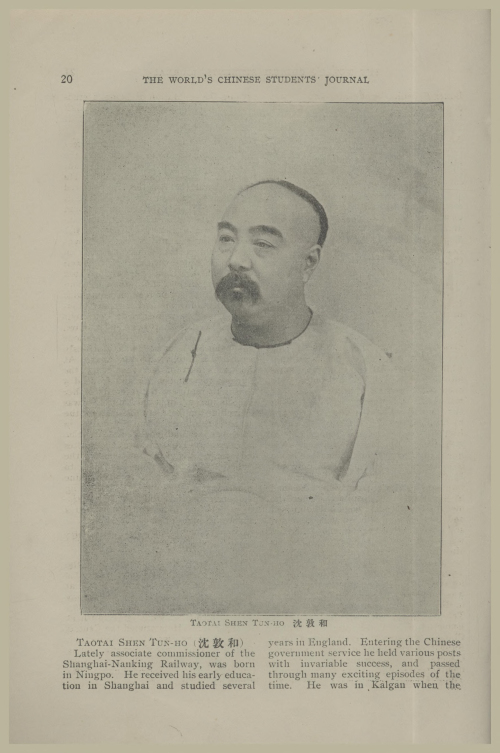 沈敦和留辮便服照片(《寰球中國學生報》1906年第2期)