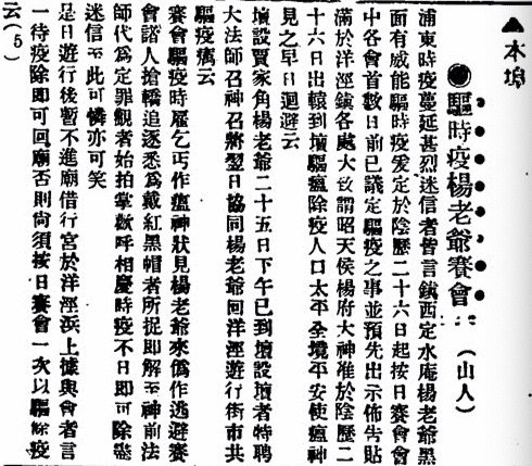 《驅時疫楊老爺賽會》《新聞報》1919年7月25日