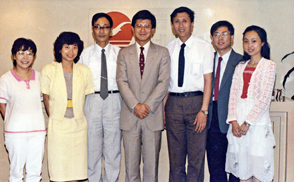 1985年6月,羅康瑞在香港瑞安集團(tuán)總部接待香港工商研討班部分學(xué)員。(右起:景瑩、王安德、王道南、羅康瑞、吳士良、姚麗嫦)
