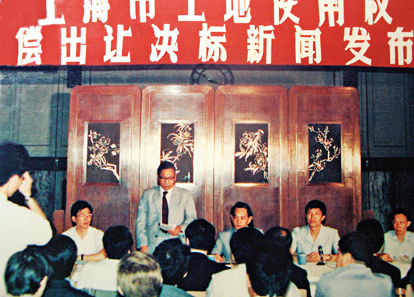 那個時候,中央層面是谷牧副總理在具體管這個事情。1987年7月,國務院特區辦專門給谷牧寫了個報告,谷牧批準在天津、上海、廣州、深圳四個城市開展試點。事實上,天津和廣州都沒怎么動,深圳動了一下,拿了塊地就拍賣了。我們上海是很認真、很慎重地開展了研究和試點,搞的是真正面向外資的國際招標。