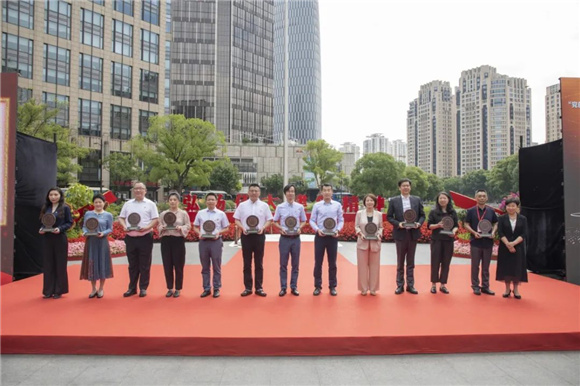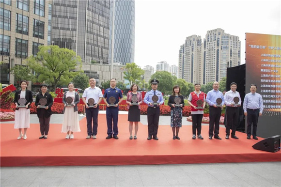 中共上海市委宣傳部副部長(zhǎng)、市文明辦主任潘敏,中共上海市委黨史研究室主任嚴(yán)愛(ài)云,中共黃浦區(qū)委書(shū)記杲云為35家“黨的誕生地”守護(hù)工程成員單位授牌。