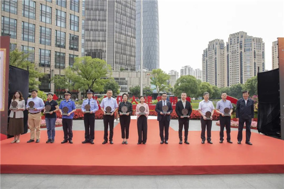 6月7日,中共一大紀(jì)念館“黨的誕生地”守護(hù)工程暨“我到一大看升旗”主題教育活動(dòng)啟動(dòng)儀式在一大廣場(chǎng)舉行。中共上海市委宣傳部副部長(zhǎng)、市文明辦主任潘敏,中共上海市委黨史研究室主任嚴(yán)愛(ài)云,中共黃浦區(qū)委書(shū)記杲云共同出席了活動(dòng)。